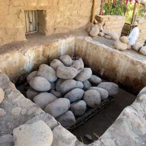 - Sobre el tablón se colocan las piedras, la central se denomina capitana es la más grande de las 5 y las esquineras, que deben tener el mismo tamaño aproximadamente.