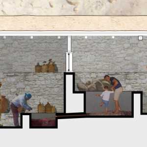 - La bodega se utiliza para guardar el vino y los aperos de labranza. En ella se encontraban las vasijas cerámicas semienterradas en el suelo para conservar su temperatura.
